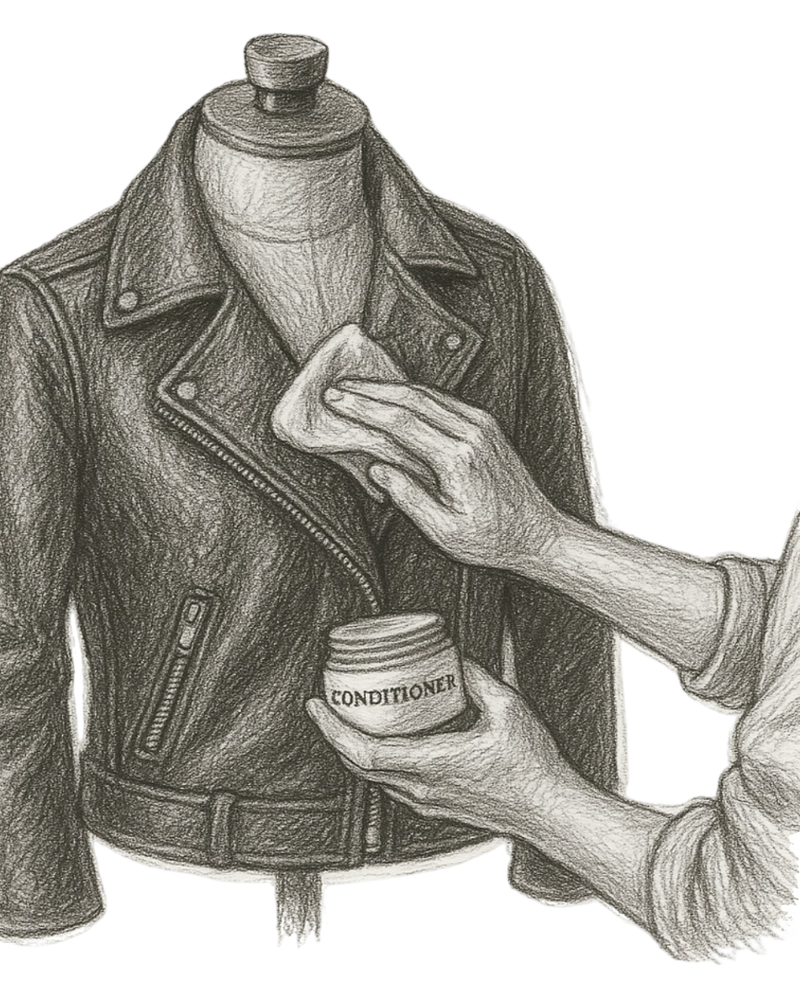 Use a pH-balanced leather balm or cream. Less is more, apply evenly.