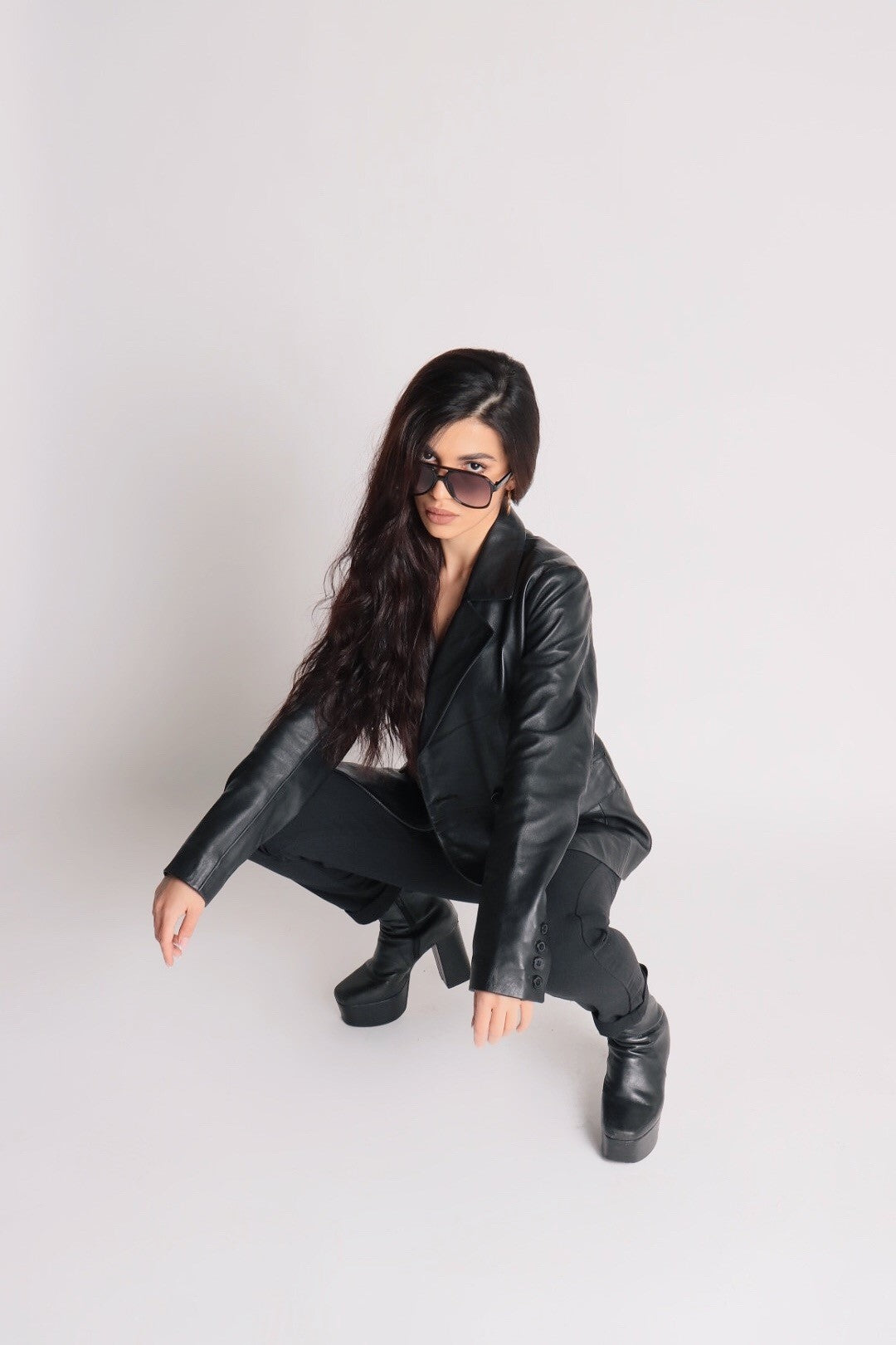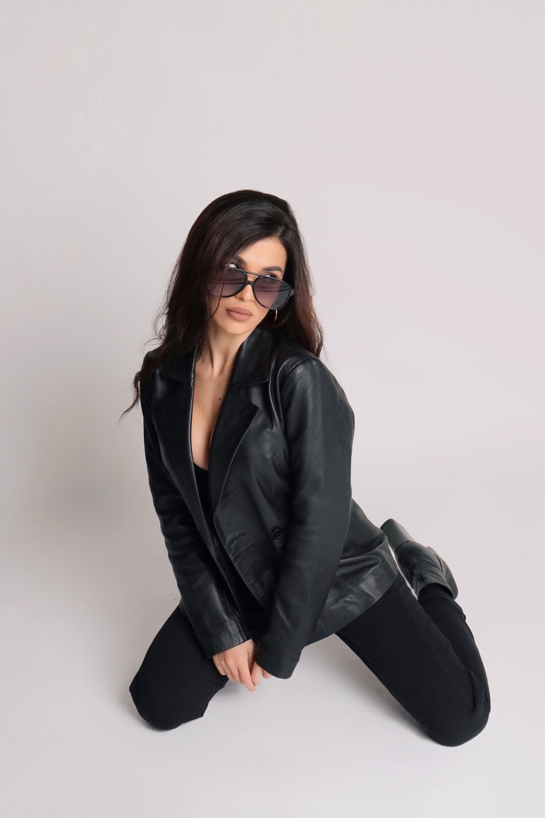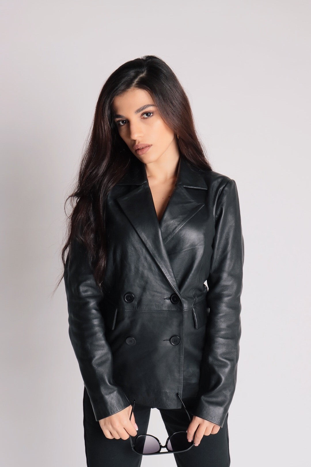 Express yourself in our double-breasted leather blazer made from supple leather in a relaxed, double-breasted shape. Wear yours with tailored pants.
